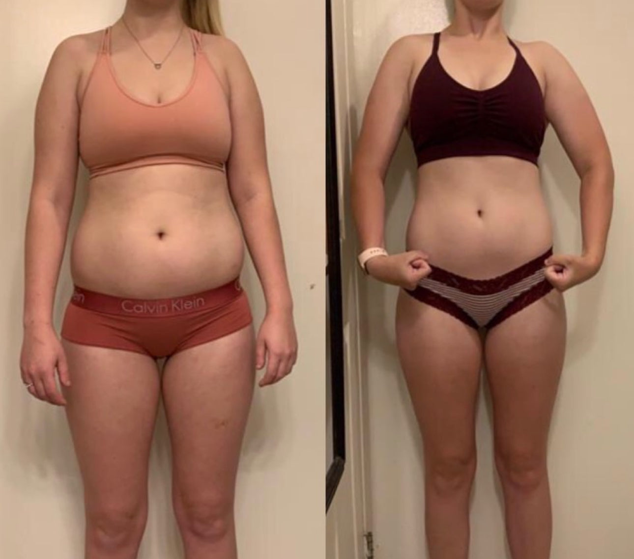 Left was during quarantine where I was doing half ass home insta workouts, eating & drinking whatever and didn't have much discipline or motivation.